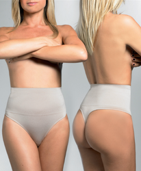 Трусы-стринг утягивающие с моделирующим и поддерживающим высоким поясом. Поддеркивает естественную форму бедер и убирает недостатки талии. Высокий уровень компресии. Коллекция "Shapers".