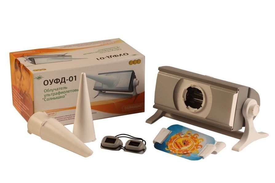 Ультрафиолетовый облучатель ОУФд-01 «Солнышко» предназначен для лечебного и профилактического облучения детей в условиях стационара, поликлиниках, санаториях, профилакториях, а также в домашних условиях.