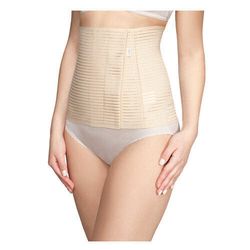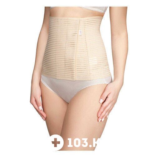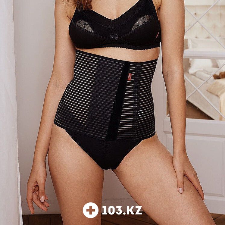 Бандаж в виде широкого корсетного пояса корректирует область живота и талию, способствует восстановлению фигуры после родов. Степень утягивания регулируется при помощи застежки «велькро». Воздухопроницаемая ткань приятно прилегает к телу и не вызывает раздражения кожи. Перед выбором проконсультируйтесь с акушером-гинекологом.