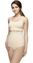Топ бесшовный послеродовой ФЭСТ обеспечивает максимальный комфорт благодаря мягкости и эластичности. Изделие рекомендуется носить с первого дня после родов. Топ незаменим при колебаниях размера груди в период установления лактации. Широкие бретели с мягкими прокладками снимают напряжение с плеч и шеи. Модель удобно использовать для сна и ночного кормления. Специально разработанные переплетения позволяют изделию растягиваться по мере увеличения груди, что защищает грудь от потери формы и растяжений кожи. Эластичность изделия облегчает подбор размера. Верхняя часть чашки отстёгивается, что позволяет кормить ребёнка, не снимая топ.