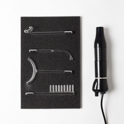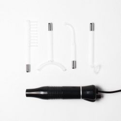 Принцип действия массажера основан на широко известной и часто используемой методике местной дарсонвализации (воздействие на ткани тела слабыми импульсными токами высокой частоты и напряжения). При дарсонвализации импульсные токи передаются на кожу через герметичный пустотелый стеклянный электрод, наполненный воздухом или инертным газом под низким давлением.