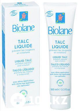 Жидкий гипоаллергенный тальк Biolane представляет собой новую формулу эмульсии, которая превращается в тальк при нанесении на кожу. Жидкому тальку Biolane свойственны все те функции, которые несет в себе обычный сухой тальк при этом, в отличие от присыпок, не имеет таких недостатков, как летучесть.