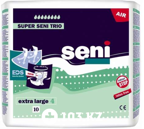 Указанная цена на Подгузники Super Trio, размер 4 (Extra Large) Seni в Алматы может отличаться от фактической. Если в описании или цене вы заметили неточность или ошибку, пожалуйста, сообщите нам на почту help@103.kz.