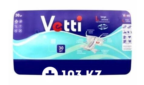 Указанная цена на Подгузники для взрослых Vetti Large (L), 30 шт Vetti в Алматы может отличаться от фактической. Если в описании или цене вы заметили неточность или ошибку, пожалуйста, сообщите нам на почту help@103.kz.