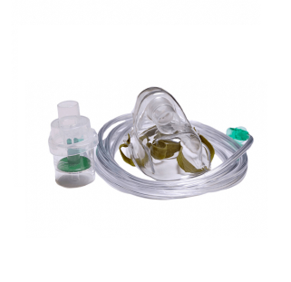 Маска для небулайзера служит сосудом, в котором лекарство преобразуется в аэрозоль и подается в дыхательные пути пациента, максимально эффективно насыщая пациента необходимыми лекарствами. Маска оборудована носовой клипсой и эластичной лентой, благодаря им маска удобно и надёжно прилегает к лицу пациента. Маска изготовлена из медицинского поливинилхлорида, материал прозрачный, поэтому маска не препятствует визуальному наблюдению за цветом кожи больного.