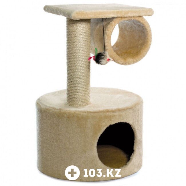 Компактная и очень стильная двухуровневая конструкция из пещерки (400х400/170мм - вход) с платформой, туннелем (170х255мм) и полочкой (290х290мм). Приятный бонус для вашей киски – игрушка на резинке, а хозяева могут выбирать цветовое решение, наилучшим образом подходящее к общему стилю интерьера. Цвет: бежевый. Общий размер комплекса: 390х390х620мм. Диаметр столбика: 90мм.