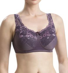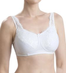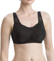 Бюстгальтер ортопедический из трикотажного полотна и кружева. Обхват регулируется удобной застёжкой сзади. Специальный кармашек для протеза (с тремя открытыми швами) находится с обеих строн. Широкие кружевные бретели снимают напряжение с плеч и шеи. Высокая линия декольте и расширенный пояс скрывают следы оперативного вмешательства.