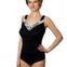 при этом расцветка (а именно светлая вставка на декольте) визуально делает декольте низким – таким же как у обычного купальника.