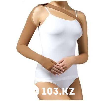 Рукав выполнен по бесшовной технологии из пряжи TACTEL повышенной комфортности. Изделие обеспечивает градуированную компрессию – постепенное ослабление давящего эффекта от запястья к плечу. Фиксация верхней части рукава либо к бретели бюстгальтера, либо с помощью специального ремня через туловище.