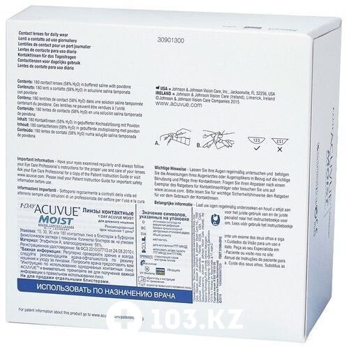 Реализация товара 1-Day Moist (180 линз) Acuvue в Алматы осуществляется только в стационарном торговом объекте по указанному адресу продавца. Информация о товарах и услугах на портале 103.kz носит справочный характер и не является публичной офертой.