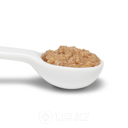Состав:Свиная печень, курица, свинина, рис, волокна овса, кукурузный крахмал, различные сахара, животный жир, семена подорожника, рыбий жир, таурин, DL-метионин, витамины и микроэлементы.