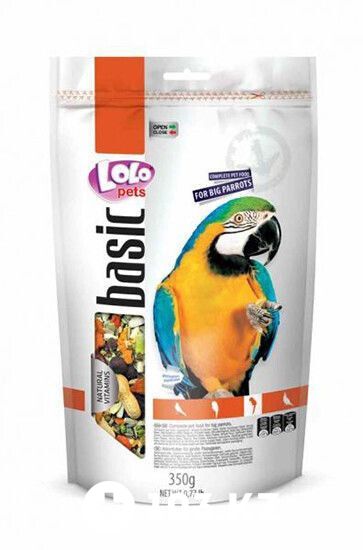 Lolo Pets Doypack, 350 г - сбалансированный корм для крупных попугаев, обогащенный витаминами, минералами и пектинами.