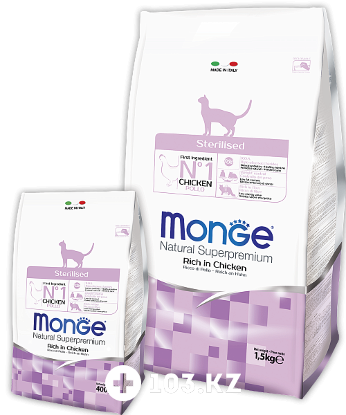 Указанная цена на Cat Sterilized Monge в Алматы может отличаться от фактической. Если в описании или цене вы заметили неточность или ошибку, пожалуйста, сообщите нам на почту help@103.kz.