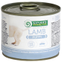 мясо и продукты животного происхождения (67% мясо ягненка), бульон, зерна (3% рис), минералы, 0,1% клиноптилолит осадочного происхождения (1г568), масла и жиры (0,1% льняное масло).