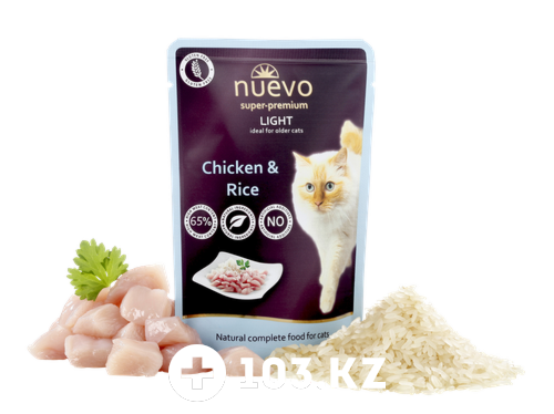Реализация товара Nuevo Light Chicken and Rice Nuevo в Алматы осуществляется только в стационарном торговом объекте по указанному адресу продавца. Информация о товарах и услугах на портале 103.kz носит справочный характер и не является публичной офертой.