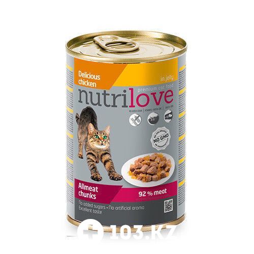 Nutrilove Chunks Cat chicken in jelly - влажный корм для взрослых кошек, приготовленное на пару филе из курицы в желе.