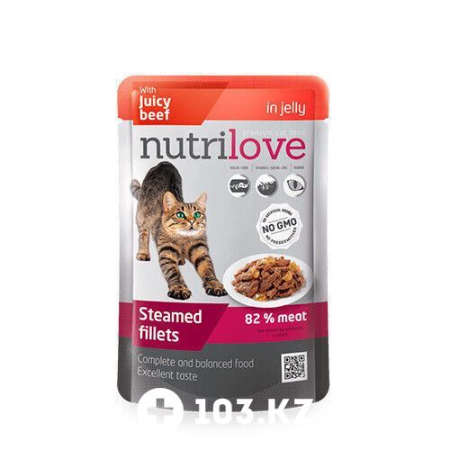 Nutrilove NMpouch Cat beef in jelly - влажный корм для взрослых кошек, приготовленное на пару филе сочной говядины в желе.