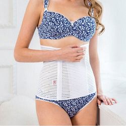 Стерильный полукорсет в виде широкого корсетного пояса с упругими косточками корректирует область живота и талию, способствует восстановлению фигуры после родов. Степень утягивания регулируется при помощи застежки «велькро». Воздухопроницаемая ткань приятно прилегает к телу и не вызывает раздражения кожи.