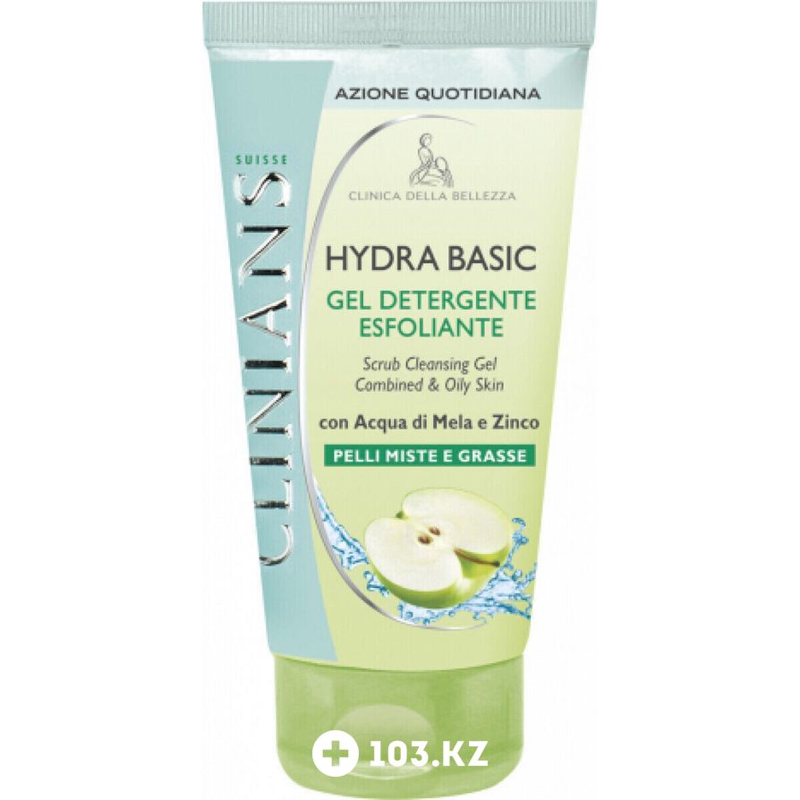 Скраб-гель CLINIANS Suisse 150мл HYDRA-T очищающий для лица с экстрактом Зеленого Яблока и цинком для комбинированной и жирной кожи.