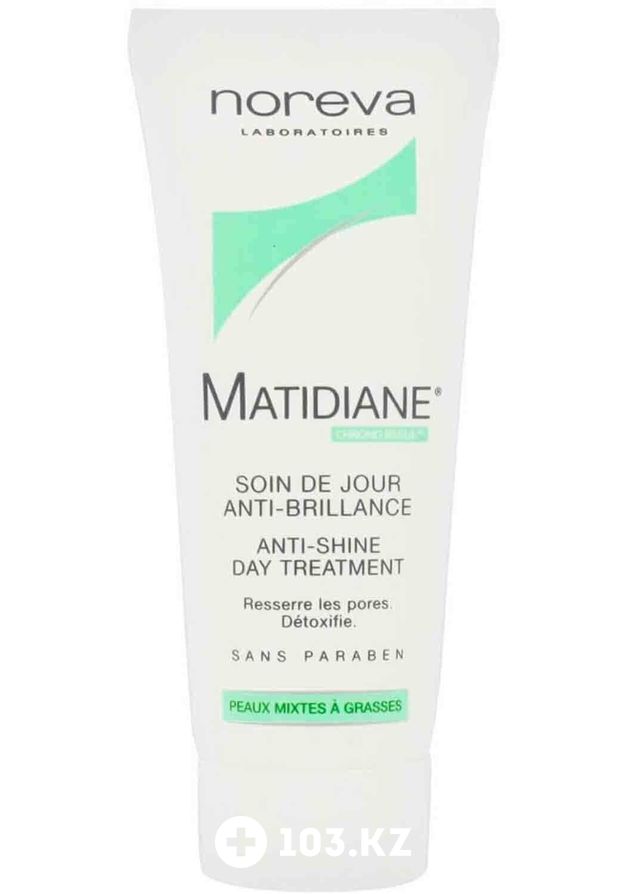 Активный компонент Chrono Regul HD способствует впитыванию избытков кожного сала, что придает склонной к жирности коже матовость и убирает неприятный жирный блеск. Матирующий дневной крем Noreva Matidiane Anti-Shine Day обладает легкой нежирной текстурой, напоминающей пудру. Все компоненты крема гипоаллергенны, он не содержит парабенов, не является причиной появления комедонов и не вызывает акн