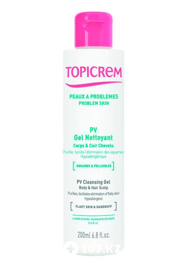 Топикрем PV гель для мытья тела и головы 200мл - специально разработан для очищения кожи, подверженной шелушению и/или грибковым инфекциям. Благодаря содержанию эффективного антимикробного компонента, пироктона оламина , гель-пенка замедляет распространение грибковой флоры, вызывающей шелушение кожи, отшелушивает омертвевшие клетки, обеспечивает комфортное состояние кожи. Hанести на влажную кожу массажными движениями, вспенить и оставить на 5 минут, затем тщательно смыть водой.
