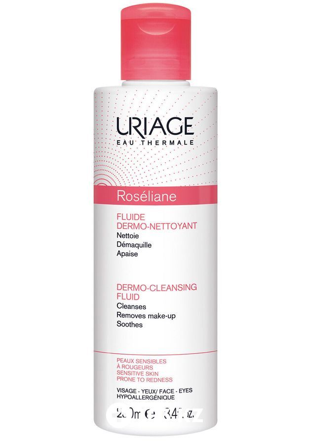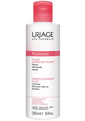 Очищающая эмульсия для лица Урьяж Розельян URIAGE ROSELIANE FLUIDE DERMO-NETTOYANT со сверхмягкой очищающей основой и растительными экстрактами. Мягко очищает кожу, успокаивает её и снимает отёчность. Не требует обязательного смывания.