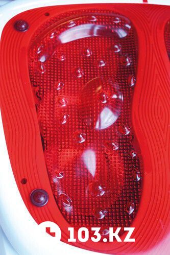 Основание установлено на резиновых прослойках, чтобы массажер не царапал кафель, паркет или другой материал пола. Во внутрь, встроен мотор который задает спиральную вибрацию самой платформы.