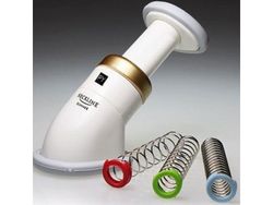 Установите соответствующую пружину в прибор и разместите тренажер на груди таким образом, чтобы он упирался в подбородок. Удерживая тренажер Neckline Slimmer рукой, сгибайте шею по направлению к груди. Желаемый уровень напряжения регулируются с помощью пружин разной упругости, входящих в комплект.