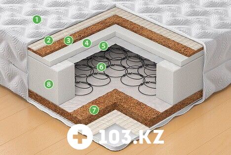 8 - Еврокаркас из пенополиуретана. Удерживает пружинный блок и придает четкую форму матрасу.
