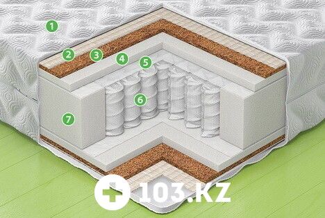 7 - Еврокаркас из пенополиуретана. Удерживает пружинный блок и придает четкую форму матрасу.