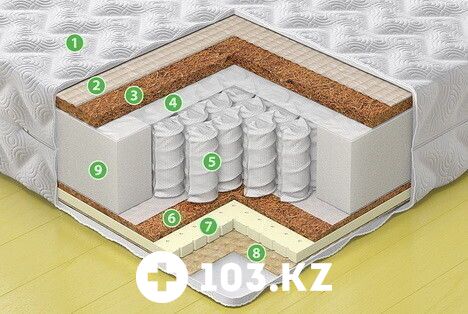 6 - Кокосовое волокно. Натуральный наполнитель из спрессованных кокосовых волокон, скрепленных пропиткой на основе натурального латекса. Придает жесткость матрасу и делает его более упругим.