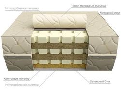 Кокосовый лист —изготавливается из натуральных волокон кокосового ореха, с добавлением натурального латекса для скрепления волокон и придания упругости. Придаёт матрацу дополнительную жёсткость. 2 листа толщиной 30 мм.