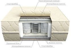 Мягкий матрас с настилами из струтофайбера – материала, специально созданного для использования при производстве современных матрасов. Он придает модели высокие эксплуатационные свойства: такой матрас не впитывает влагу и запахи, не боится чрезмерной сухости и не вызывает аллергии.