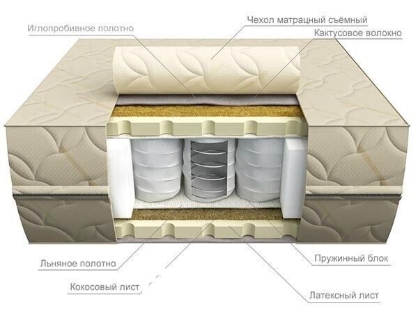 Льняное полотно —дополнительный материал между пружинным блоком и настилочными слоями. Изготавливается из спрессованных льняных волокон, пропитанных латексом.