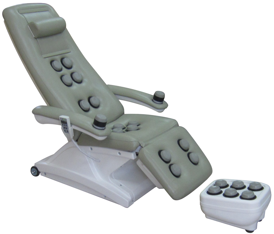 ОМК-1М ЭПС включает в себя: кресло массажное, массажную подставку «Стопа» и систему питания и управления.