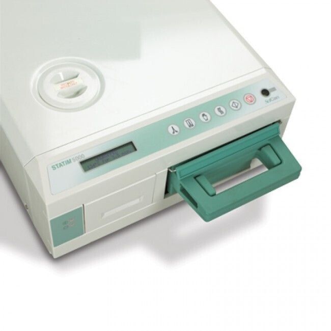 Statim 5000 S – быстрый, надежный и компактный кассетный стерилизатор в мире автоклав S класса от запуска и до полной стерилизации. Будучи крупнее модели 2000, модель Statim 5000 располагает дополнительным циклом стерилизации и более вместительной кассетой, спроектированной для обработки более громоздких инструментов. Используется в стоматологии, гинекологии, эндоскопии и офтальмологии. Конструкция кассеты сохраняет стерильность инструмента внутри до 12 часов. Автоклав Statim 5000 позволяет стерилизовать наконечники всего лишь в течении 17,5 минут (упакованные) и 9 минут (неупакованные) в перерывах между приёмом пациентов, что позволяет повысить эффективность работы и обеспечивает значительную экономию рабочего времени. Система подачи пара автоклава Statim 5000 S поддерживает постоянную температуру и удаляет воздух до начала процесса стерилизации, который вызывает окисление в обычных автоклавах. В каждом рабочем цикле кассетного автоклава Statim используется только чистая дистиллированная вода, что позволяет предотвратить образование ржавчины и скопление биологических загрязнений.