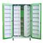 Строение шкафа состоит из корпусной части, створок, внутренних полок и одного встроенного сейфа. Данная модель крупногабаритного размера, высота составляет 1,8 м, ширина 1м, глубина 0,6 м. Основа состоит из ДСП зеленого цвета, поворачивающиеся внутренние створки сделаны из ABS-пластика, разделители между полками из органического стекла.