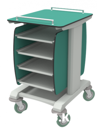 Конструкция тележки приспособлена для размещения и перевозки быстросъемных спец. лотков высотой 25 и 65 мм (заказываются отдельно).