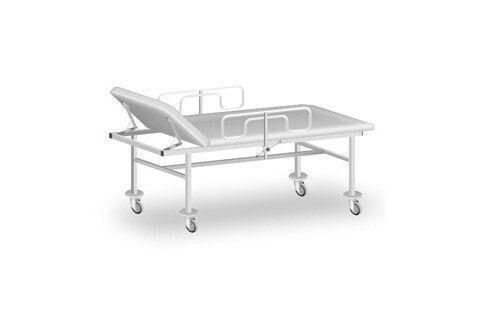 Каркас изготовлен из профильной трубы, лежак, подголовник ― ДСП, поролон, винилискожа. Ступенчатое регулирование подголовника. Колеса диаметром 150 мм (два из них с тормозом).
