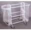 Тележка изготовлена из круглой трубы, уголка и прутка, два мешка из полиэтиленовой пленки. Колеса диаметром 100 мм (два из них с тормозом).