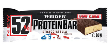 Высокобелковый спортивный батончик Weider 52% Protein Bar содержит 26 г многокомпонентного белка высокого качества, способствующий поддержанию роста мышц и предотвращению развития катаболических процессов в них. Протеиновые батончики идеально подходят для восполнения энергетических запасов во время длинных перерывов между приемами пищи или в качестве пост-тренировочного питания, поскольку 52 % Protein Bar содержит молочный и яичный белки, а также казеин.