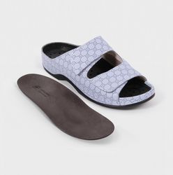 Ортопедические босоножки предназначены для создания комфорта и здоровья ног при ходьбе на улице и в помещениях. Подходят для полных ног. Специальная вставка под косточку. Особая конструкция всех узлов (верх обуви, специальная подошва, съемная ортопедическая стелька) направлена на снижение болевых ощущений в области косточки большого пальца, уменьшения давления на стопу и отеков, повышение равновесия, устойчивости при ходьбе и поглощения ударной нагрузки на пятку и коленные суставы.