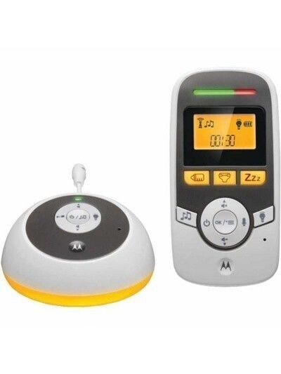 Родители могут вовремя заметить когда проснется ребенок, даже находясь в 50 метрах от малыша в помещении или же в 300 метрах на открытом пространстве. При превышении допустимого расстояния Вы услышите предупреждающий сигнал. Прекрасной особенностью является встроенная технология DECT с частотой 1.8 ГГц, которая позволяет передавать сигнал с минимальным количеством шумов, и не конфликтующая с WiFi-устройствами. Радионяня имеет очень чувствительный микрофон, который с помощью функции VOX не реагирует на посторонние звуки, отличающиеся от голоса и движений Вашего малыша. Сигнал на 100% приватный. Также очень удобной особенностью является возможность родительского блока работать от аккумулятора, что дает значительно большую свободу действий и местонахождения мамы. Модель Motorola MBP-161 оснащена ЖК-дисплеем, двусторонней связью родителей с ребенком, возможностью проигрывания колыбельных (в памяти 5 полифонических мелодий), а также таймерами для питания, сна или смены подгузников.