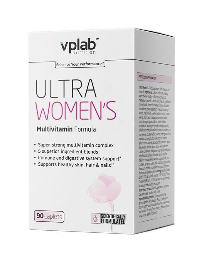Витаминно-минеральный комплекс, разработанный специально для женщин, которые ведут активный образ жизни. При создании Ultra Women Multivitamin Formula учтены физиологические особенности женского организма. Также в состав продукта добавлены несколько комплексов для кожи, волос, ногтей, связок, суставов, борьбы со старением, умственной активности, повышенной работоспособности.