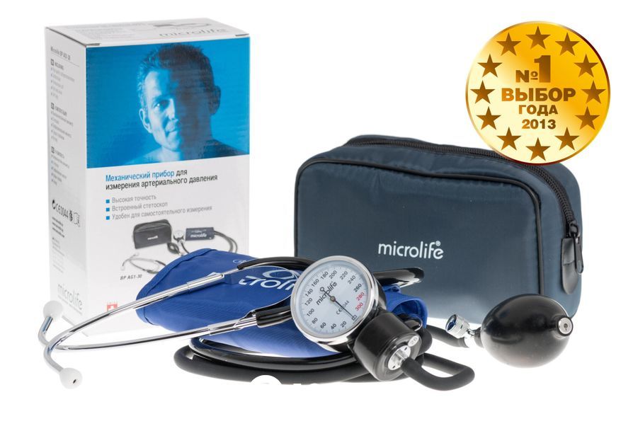 Microlife AG1-30 - это механический тонометр класса комфорт, который является надежным медицинским прибором для выполнения измерений на плече. Прибор был разработан в сотрудничестве с врачами, а клинические тесты подтвердили высокую точность его измерения. Наивысшая оценка Британского Гипертонического общества.