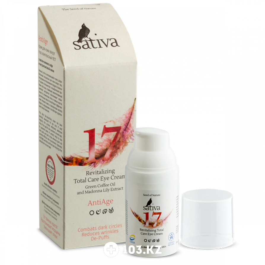 Комплексный крем для кожи вокруг глаз №17 Sativa - нежный, легко впитывающийся крем, разработан специально для ухода за возрастной кожей вокруг глаз. Регулярное использование крема дважды в день позволяет решить большинство специфических проблем этой зоны: крем обладает сильным лимфодренажным и сосудоукрепляющим эффектом, уменьшает отёки и возрастную морщинистую сеточку.