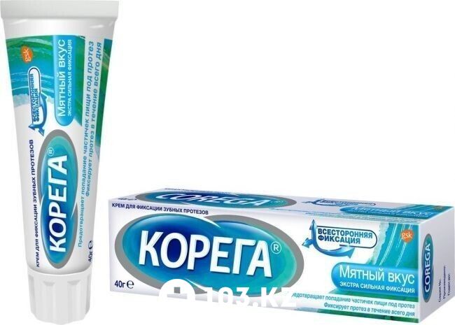 Крем для фиксации зубных протезов "Корега" обеспечивает надежную фиксацию протеза в полости рта на протяжении целого дня. Фиксирующеий крем "Корега" обеспечивает более плотное и надежное прилегание протеза к десне и предотвращает попадание частичек пищи под протез во время еды. Удобный плоский наконечник тюбика позволяет наносить крем на протез более аккуратно и точно.