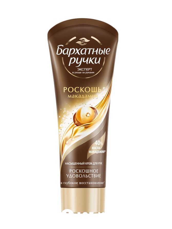 Бренд Бархатные Ручки представляет крем для рук Роскошь макадамии. Крем содержит в себе 40% масла макадамии, которое дарит коже рук роскошь и насыщенное питание. Крем глубоко проникает в кожу, питая и восстанавливая ее.