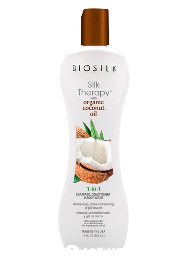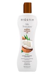 Универсальное очищающее средство Biosilk Silk Therapy Organic Coconut Oil с мягкой формулой удаляет загрязнения, одновременно наполняя волосы и кожу необходимой влагой.