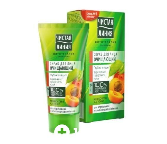 Абрикосовый очищающий скраб бережно и глубоко очищает кожу от загрязнений, нежно удаляет отмершие клетки, очищает загрязнённые поры, не раздражая и выравнивая кожу. В мякоти и косточках абрикоса содержится целый набор полезных витаминов, минералов и жирных масел. В косметике Чистая Линия используется твердая оболочка косточки, которая измельчается до нужного размера и добавляется в скрабы, как безопасный и высоко эффективный природный абразивный материал.